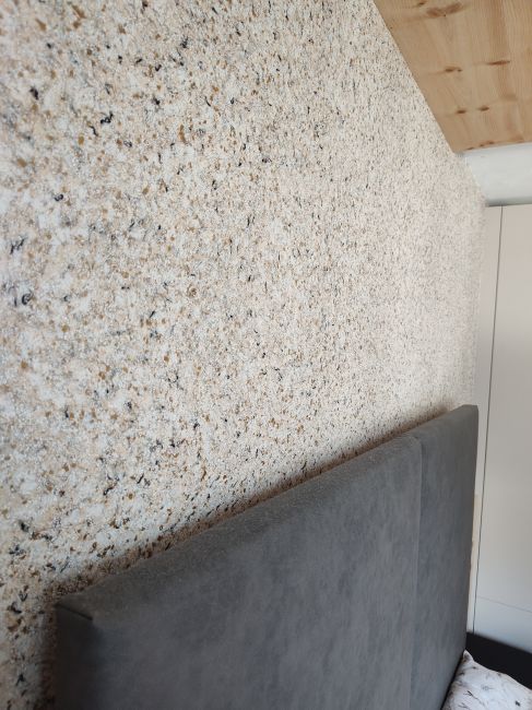 Die aufgetragene Schicht von 1-2 mm wirkt wie ein Pullover, der sich über die Wände legt. Im Gegensatz zu anderen Wandbelägen bleiben die Wände mit Baumwolle jedoch diffusionsoffen und atmungsaktiv. Ein klares Plus für Ihr Raumklima, gerade im Kellerbereich oder Treppenhaus.